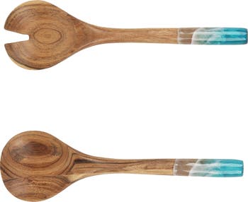Wave Fork and Spoon Salad Coastal Wood Novelty Serving Utensils Set of 2