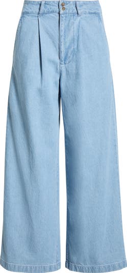 Wide hems enhance the leg-elongating silhouette of these sailor pants cut from light-wash denim.