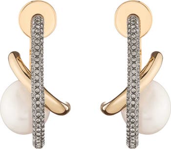 These stunning drop earrings feature glittering pavé crystals and the illusion of a floating freshwater pearl for a look that gives mysterious flair to any outfit.