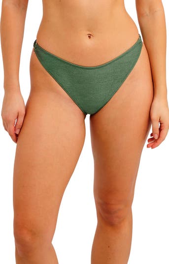 A higher cut lends leg-lengthening appeal to barely there bikini bottoms that make beach days better.