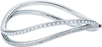 Undulate streams of pavé crystals and faux pearls lend sparkle and elegance to this split, hinged bangle.