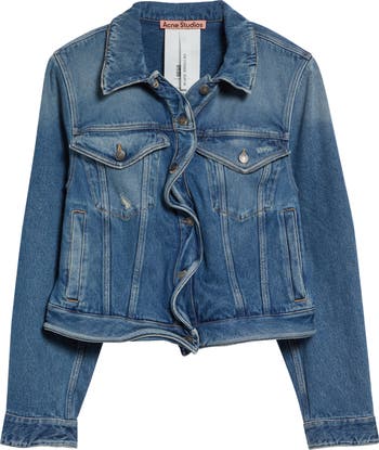 Wired edges bring a wavy effect to this lightly distressed denim jacket that brings structured movement to your look.