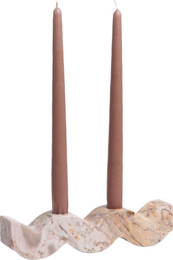 A playful touch for entertaining, the reversible wavy candelabra adds a powerful statement to your home decor. The Wavy candelabra brings a playful energy to the table, with a reversible shape that holds either 2 or 3 candles. Handcarved with stone carpentry techniques traditional to Perú and certified ethically hand-crafted by NEST.