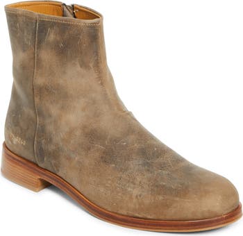 Subtly distressed like a well-loved favorite, this plain-toe leather boot features minimal detailing to offer maximum versatility across your casual wardrobe. Production codes foil-stamped on the heel bring a signature finish to the relaxed, wear-everywhere look.