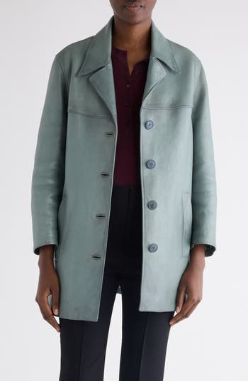 This supple lambskin-leather coat features a waxy finish that gives it a worn-in, vintage appearance. Engraved horn buttons and tailored bound buttonholes finish off the authentic look.