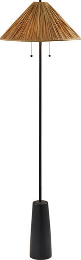 A sleek ceramic base topped by a wide, shade-casting shade rich with texture meld the modern with the natural in this lamp that's perfect for a variety of decor styles.