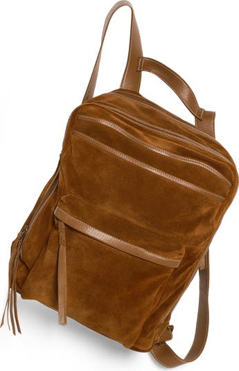 This heritage-inspired backpack showcases supple suede with smooth leather trim and braided zipper tassels for retro style. Adjustable buckle straps and multiple zip compartments and pockets inside and out make this pack a daily essential.