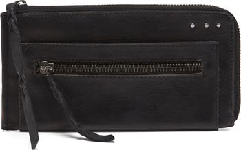 Tumbled leather brings old-favorite perfection to this zip-around wallet detailed with partially braided zipper pulls.