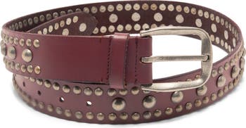 Burnished studs neatly punctuate the length of a belt cut from leather and styled to bring a moto finish to any casual look.