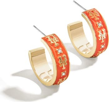 Show off your New York Mets pride with these stylish Enamel Hoop Earrings from WEAR By Erin Andrews x BaubleBar. These New York Mets earrings are hypoallergenic and feature gold-plated brass with enamel and glass stone details. The post-back closure ensures a secure and comfortable fit for showcasing your New York Mets spirit.