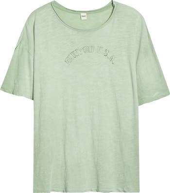 Stamped with a weathered logo, this T-shirt made of supersoft cotton sports a roomy, slouchy fit and an old-favorite look from the very first wearing.
