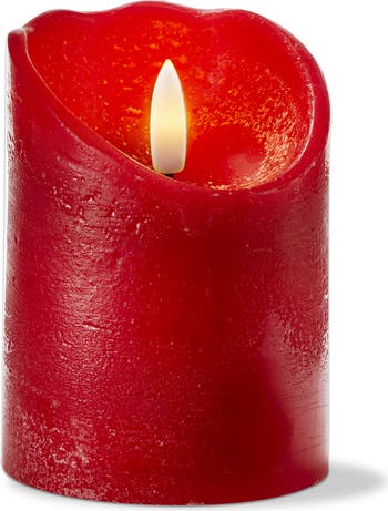 - The Weathered Red Flameless LED Pillar Candle measures 6 inches in height and 3 inches in diameter, made from high-quality plastic for durability and safety.