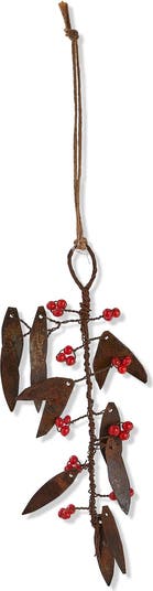 - Made from iron, this beautiful metal art piece is the perfect addition to any holiday spread. embellish wreaths, mantels, tabletops, candle holders, wine bottles, and gift boxes. features delicate twisted wire and a distressed finish, with handcrafted artisan made leaves and berries.