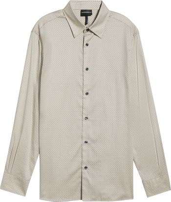 Weave Pattern Stretch Button-Up Shirt