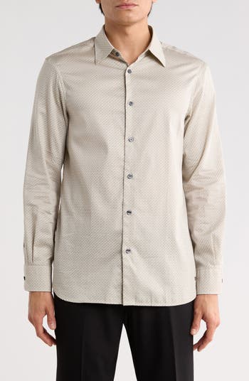 Smart and versatile, this stretch-enhanced shirt features crisp patterning and a smooth finish that resists wrinkles to keep you looking sharp on busy days and long travel. Wear it tucked or untucked to change up your style depending on the occasion, the setting or your mood.