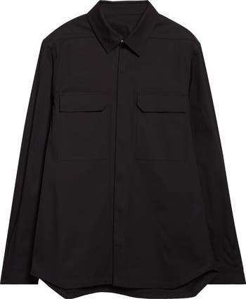 A staid departure from the iconoclastic designer's typical avant-garde offerings, this sharply tailored stretch-cotton overshirt maintains the quintessential Owens signatures. Utilitarian trappings like angled chest pockets and a webbed back strap fuse fashion and function—drape the strap over your shoulder for convenient carry when your look calls for one less layer.