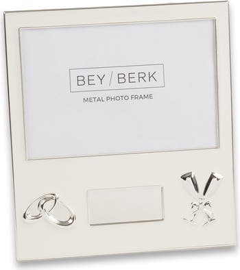 Commemorate your special day with this polished frame featuring iconic wedding motifs and an engravable plate for a personalized finish.