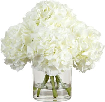 Just like diamonds, this silk hydrangea arrangement is designed to last forever. Inspired by the stunning gardens of the Northeast, this 14-In white hydrangea arrangement brings timeless beauty to your wedding tablescape. Enjoy the elegance of real hydrangeas without the seasonal limitations or upkeep. Standing tall in a clear glass vase filled with our proprietary, fade-resistant Liquid Illusions, this arrangement offers a low-maintenance, high-impact solution for your special day. Create your dream wedding look at a fraction of the cost with this stunning, long-lasting centerpiece. Pairs well with traditional, modern, contemporary and classic styles, mix and match with other arrangements for an elevated look.