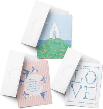 Wedding Greeting Card Pack Sets (3 ct, Assorted) Chapel Couple, Swallows Wedding, LOVE