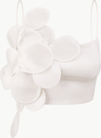 Wedding-style mini top featuring decorative floral appliqus (handcrafted decor).