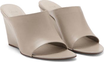 An angular almond toe and wrapped wedge heel bring stylish and walkable balance to a minimalist slide sandal shaped from smooth leather.