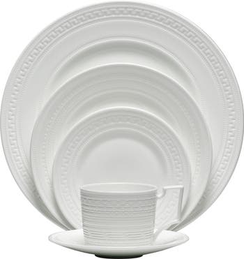 A beautifully embossed design inspired by popular textures of the Georgian era details each piece of this elegant five-piece place setting of fine bone china.