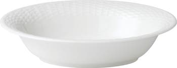 A richly textured rim inspired by the handwoven baskets of 19th-century Nantucket details an elegant serving bowl in fine bone china.
