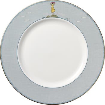 A charming depiction of high-seas adventure—both above and below the water—brightens this finely crafted bone china dinner plate. Accented with 22-karat gold detail, the art by Kit Kemp is inspired by her textile design and blends her love of craft and simple, lyrical folk art.