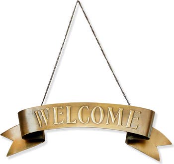 Welcome Hanging Door Sign - Antique Brass Gold Wall Art
