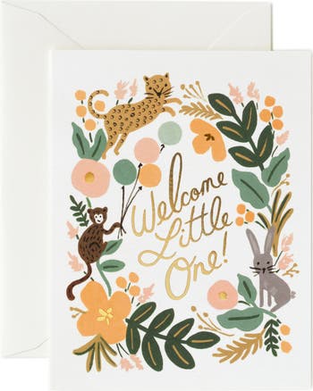 Rifle Paper Co. Welcome Little One Newborn Greeting Card, Alternate, color, Multi White