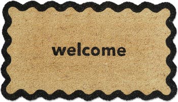 Welcome Scallop Shaped Coir Door Mat Natural Everyday Black