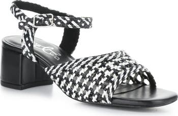 Smooth and woven leather bring textural interplay to a cushioned sandal featuring a wrapped block heel and adjustable buckle closure for walkable comfort and secure wear.