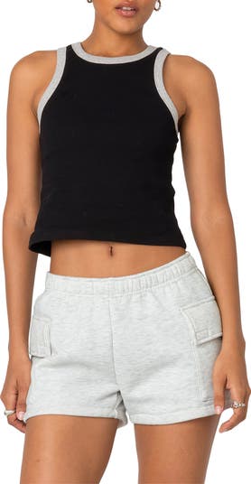 Contrasting trims and a racerback silhouette give a sporty vibe to this ultracute tank cut from soft and stretchy cotton.