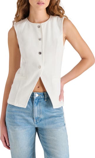 Cut from stretch-kissed cotton and tailored in a longline cutaway silhouette, this polished yet easygoing vest is perfect for an elevated weekend 'fit.