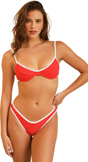 A supportive bustier-style bikini top with color-blocked seams at the top. Pair West Coast with our Venice Bottom.