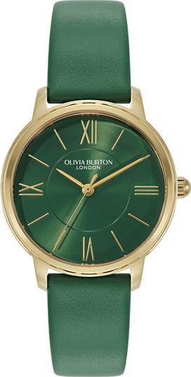 Olivia Burton Westbourne Leather Strap Watch, 30mm, Alternate, color, Green