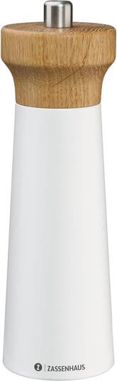 The Zassenhaus Westerland Salt Mill brings German quality and modern elegance to your kitchen. With a sleek white beechwood body and a corrosion-resistant ceramic grinder, it delivers precise performance with six adjustable grind settings. Perfect for sea salt or gourmet salts, and designed to elevate any table or cooking space.