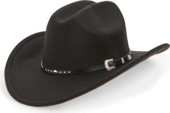 A smooth leather band adorned with polished studs enhances the ranch-ready vibe of this classic cowboy hat.