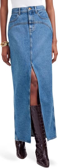 Get a little bit country in this nonstretch-denim maxi skirt made with Western-inspired yoke detailing and a slit at the front.