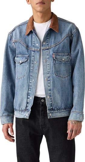 A curved yoke amplifies the Western style of this snap-up denim jacket tipped with a corduroy collar for a pop of contrast.