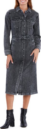 A Western twang animates a denim shirtdress washed in the perfect fade and cut to a beloved and versatile midi length.
