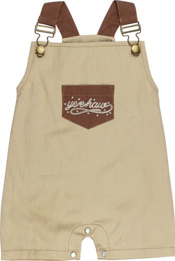 Whimsical embroidery and pearly snaps underscore the Western style of these organic-cotton twill overalls made just for the tiniest buckaroos.