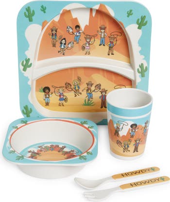 Western Theme Mealtime Plate, Bowl, Cup & Utensil Set