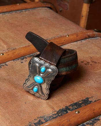 Inspired by the Western spirit, the Tabatha belt features a striking steel buckle adorned with turquoise stones. Crafted from the finest suede, it offers exceptional durability and a soft touch. The intricate detailing and two-tone embroidery showcase Fortela 's commitment to quality and refined style. This belt is more than an accessory; it's an investment in timeless elegance.