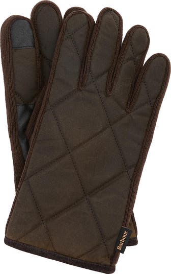 Timeless yet tech-savvy, these quilted waxed-cotton gloves bring water-repellent poise to cold days. A leather palm grip steadies your hold and touchscreen-friendly tips make quick work of calls, playlists and photos.