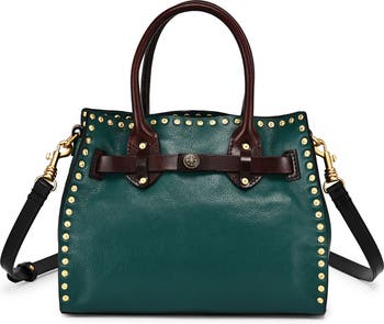 A structured genuine leather mini tote designed to deliver bold vintage inspired character. This compact silhouette offers versatile carry with refined detailing.