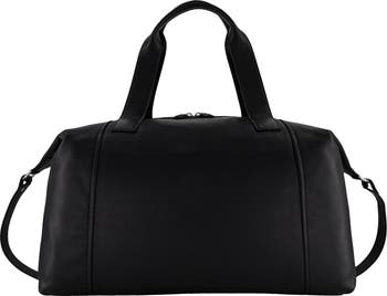 Smooth leather composition refines the profile of this everyday-staple duffle bag furnished with multiple straps for carrying versatility.