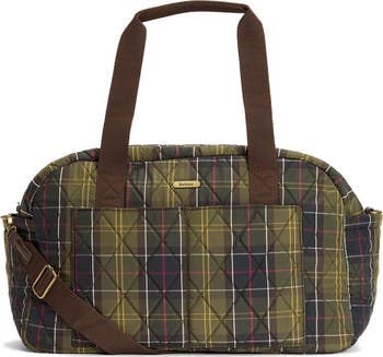 Classic tartan in an earthy palette animates this quilted bag that's both roomy and lightweight, making it ideal for an overnight or weekend getaway. Sturdy handles with leather grips and a removable strap offer carrying options.