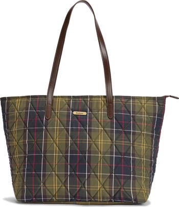 The label's iconic tartan pattern lends timeless style to a quilted, spacious tote featuring a removable zip pouch to keep your smaller items organized.