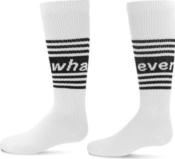 Your kid is getting older, and with that comes a little bit of an attitude. That's okay; it's par for the course. These "whatever" socks will have them wanting to say, well, whatever's on their mind! Knee high socks with the "whatever" split over both legs sends a definite message to the reader. At least they're thinking for themselves!